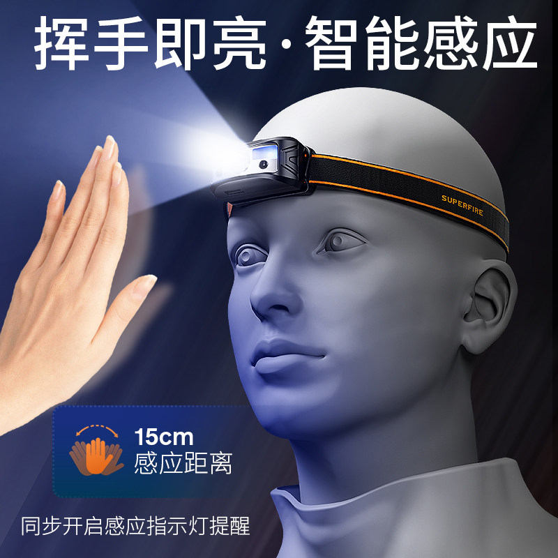 头灯头戴式强光充电超亮钓鱼专用超长续航锂电手电筒矿灯感应夜钓