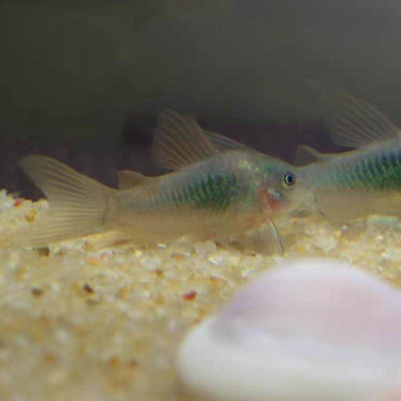 咖啡鼠鱼(又称青铜鼠)是一种常见的热带观赏底栖鱼,原产于南美洲淡水流域。体色呈温暖的青铜或咖啡色调,性情温和,适应力强,非常适合新手饲养。它们常在水族箱底层活动,以残饵、有机碎屑和缸壁藻类为食,是高效的“清洁工”,能有效减少水体污染,维持水质清洁。咖啡鼠鱼群游性强,建议5条以上群养,搭配中性至弱酸性软水、沙质底床和沉木环境,更显自然美感。作为夜行性鱼类,白天多躲藏,夜晚活跃觅食。因其出色的除藻和清理功能,深受草缸及生态缸爱好者喜爱,是兼具观赏与实用价值的理想清洁鱼种。