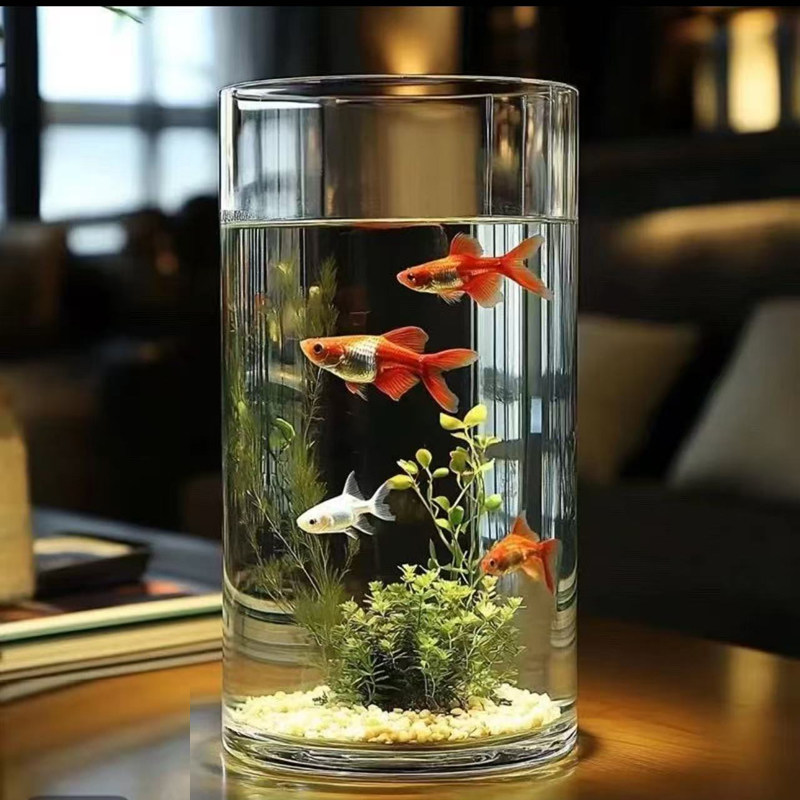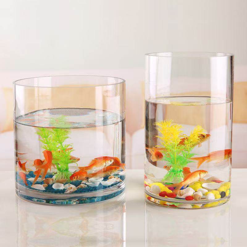 淘宝透明玻璃直筒圆形鱼缸圆柱玻璃金鱼观赏缸微景观造景高级感桌面缸