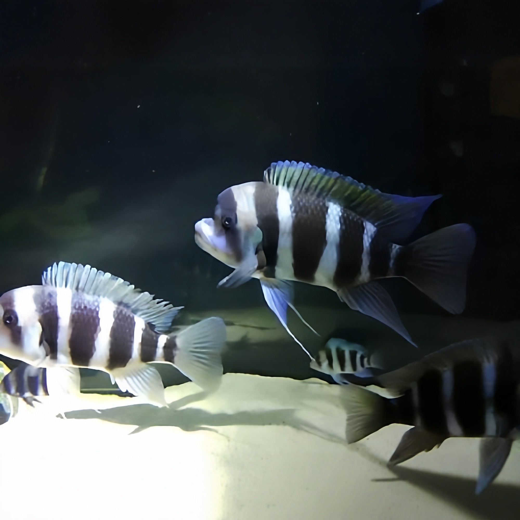 三湖慈鲷中的布隆迪六间、鹅头皇冠坦鲷与萨伊蓝,均为非洲坦干伊克湖特有的热带观赏鱼,色彩艳丽、体态优美。布隆迪六间以蓝白相间的六道横纹著称,游姿优雅;鹅头皇冠坦鲷头部隆起如冠,个性活泼,具强烈领地意识;萨伊蓝则以其深邃的金属蓝体色闻名,被誉为“坦湖蓝宝石”。三者均属硬水环境鱼类,适宜pH 7.8–9.0、水温24–28℃,需充足游泳空间与岩石造景。作为活体观赏鱼,它们不仅观赏价值高,且繁殖行为有趣,深受三湖慈鲷爱好者青睐。饲养时需注意水质稳定与合理搭配,避免种间争斗。