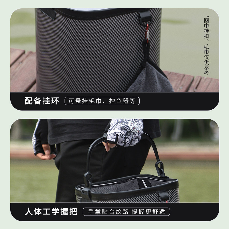 渔汀折叠活鱼桶3D碳纹钓鱼桶加厚活鱼装鱼桶鱼护桶多功能钓箱水桶