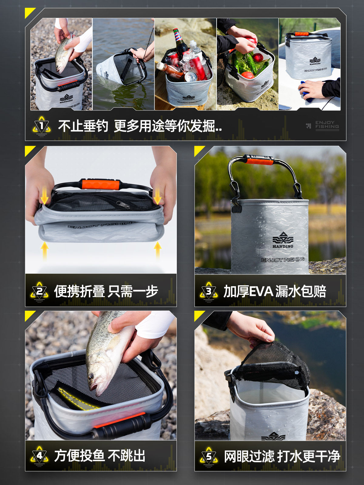 淘宝汉鼎可折叠打水桶户外带盖钓鱼大号鱼箱多功能水桶装鱼野钓活鱼桶
