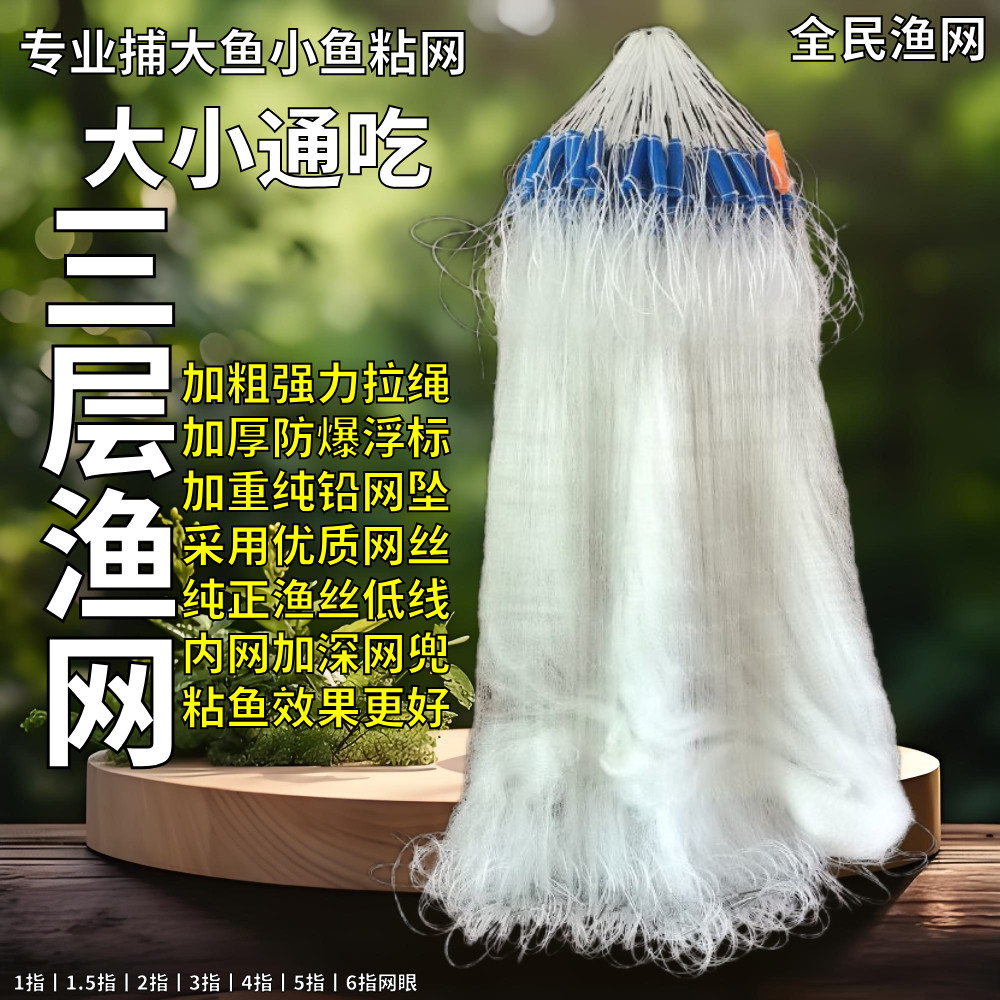 淘宝渔网三层鱼网捕鱼粘网丝网抓鱼网鲫鱼大鱼网1指小白条网加重沉网