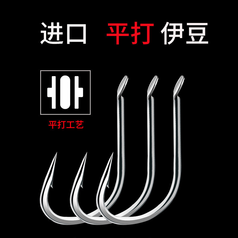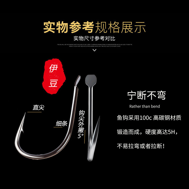 淘宝歪嘴伊豆鱼钩散装正品钓鱼勾进口鲫鱼钩细条钩平打有倒刺不跑鱼野