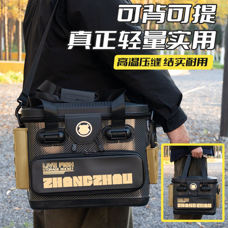 淘渔之源AK活鱼桶可单肩背加厚耐磨大容量野钓渔具兜EVA硬壳鱼护包