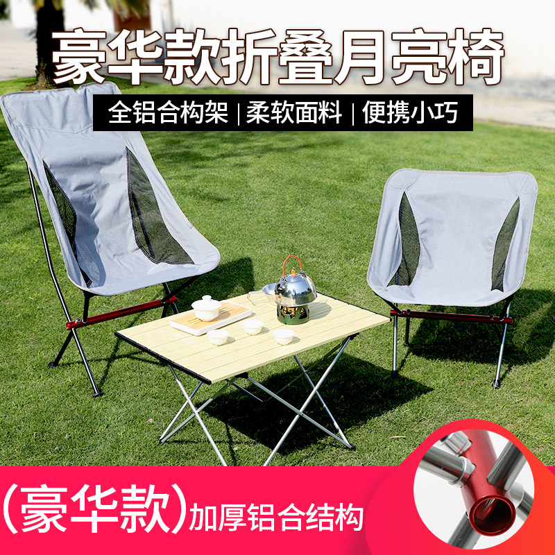 淘宝野外自驾便携式铝合金折叠月亮椅户外烧烤休闲钓鱼椅子靠背椅凳子