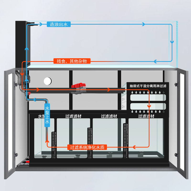 淘宝桌面超白玻璃鱼缸侧溢流溪流缸南美原生造景底滤水族箱干湿分离盒
