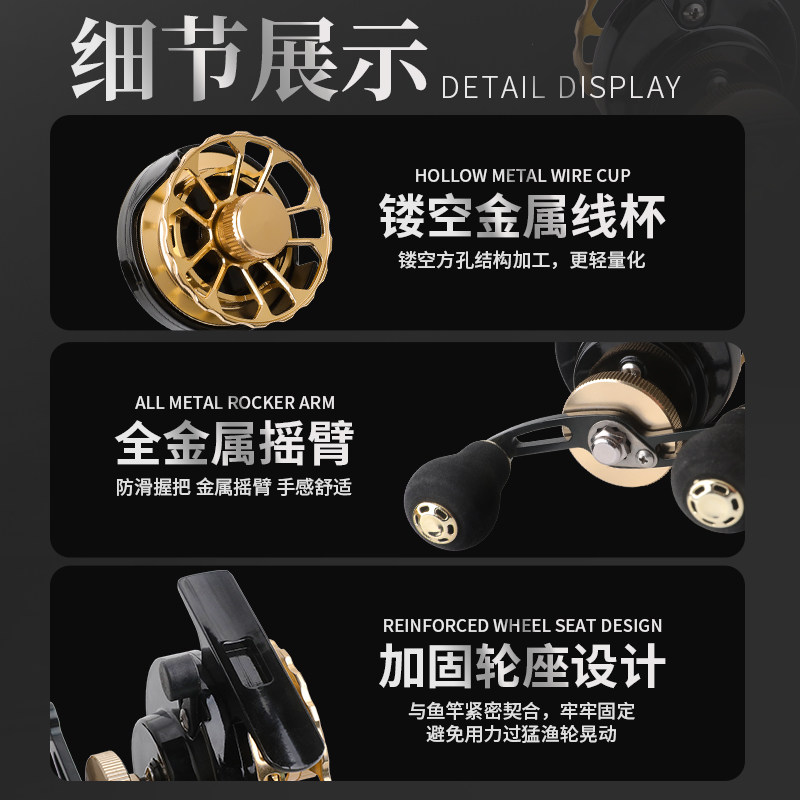 淘无间隙渔轮全金属摇臂鱼线轮海杆轮子鱼轮海竿纺车轮深线杯大斜口