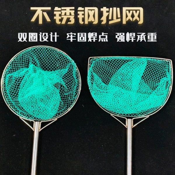 淘宝双圈内圈不锈钢抄网手工编织九股线小眼鱼捞木把抄网长柄渔具网兜