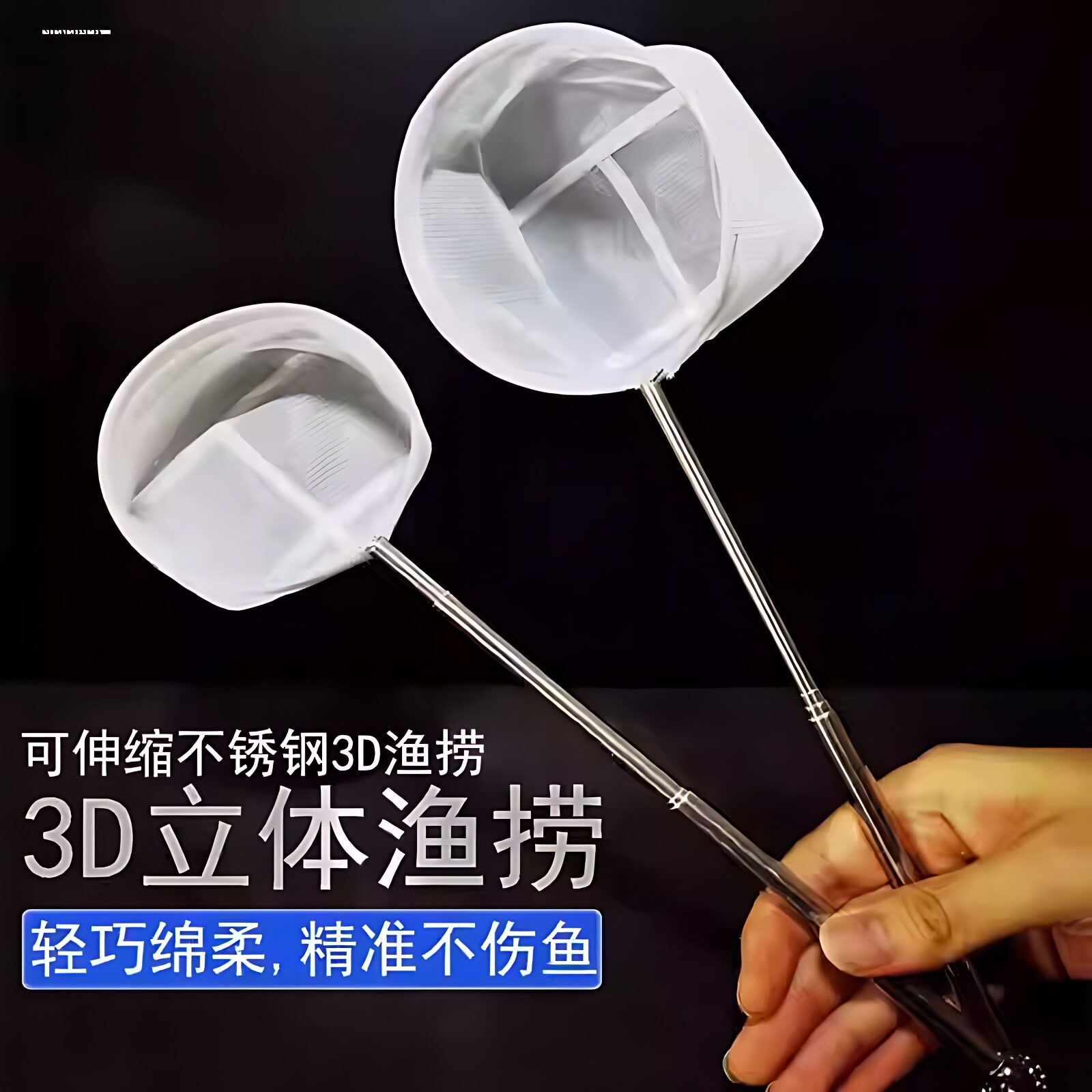 淘鱼网鱼捞3D立体可伸缩圆形方形渔捞虾捞小鱼捞抄网水族箱水晶虾捞