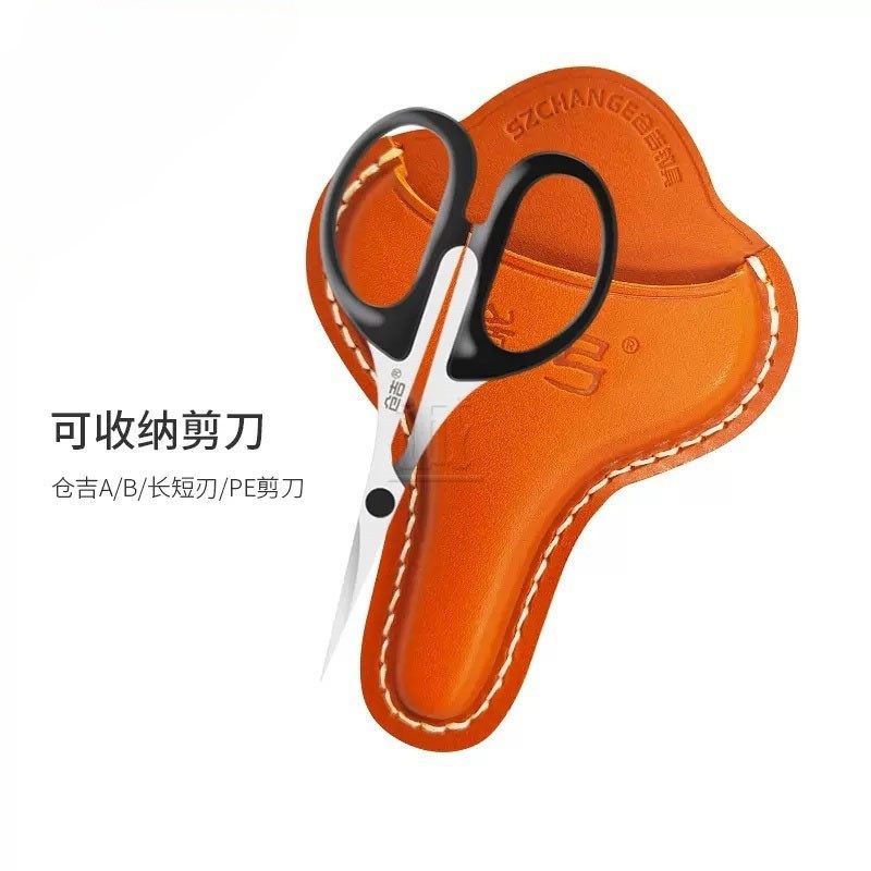 淘宝仓吉钓鱼剪刀套巅弓 纯牛皮手工打磨钓箱剪刀架竞技剪刀专用皮套