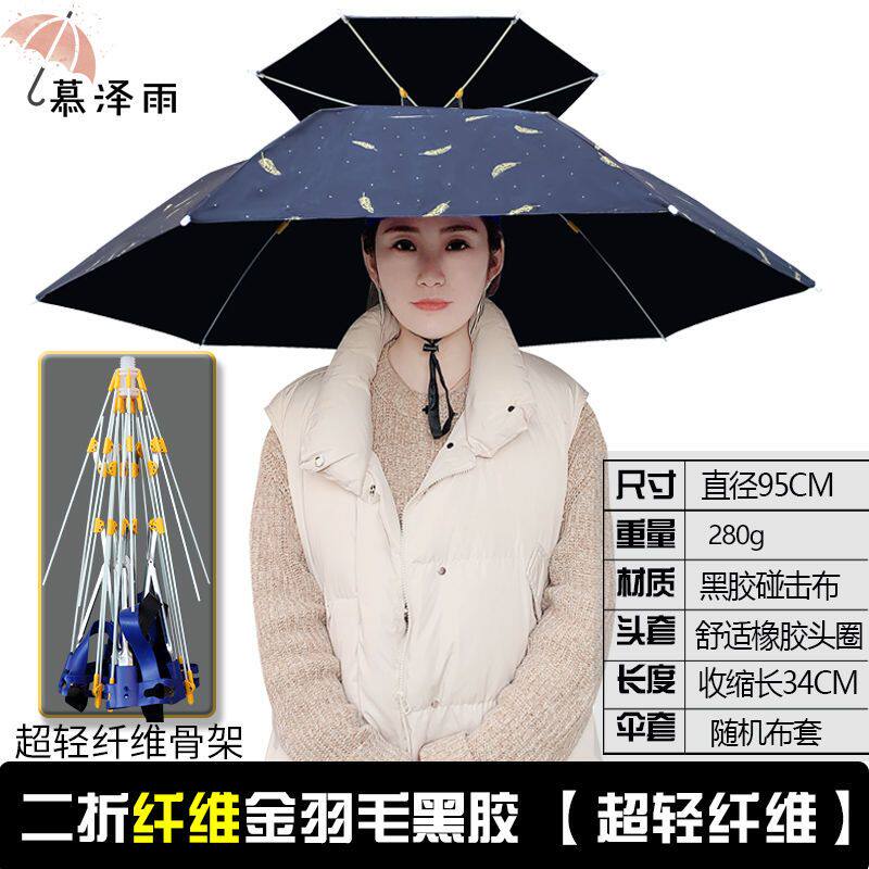 淘头戴式雨伞新款钓鱼伞帽可折叠头顶伞双层大号遮阳防晒野钓专用伞