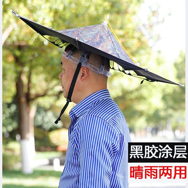 天雨伞帽头戴伞钓鱼伞帽头顶式遮阳防晒防雨帽子头带折叠大号伞垂钓