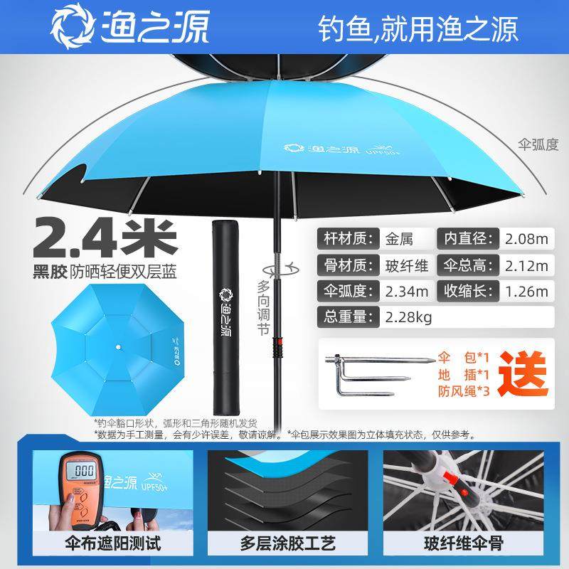 渔之源2025新款钓鱼伞钓鱼遮阳伞钓鱼专用雨伞拐杖太阳伞户外露营