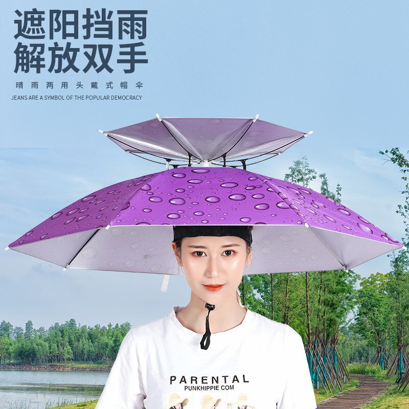 淘头戴式雨伞帽双层折叠大号晴雨两用帽子伞钓鱼防晒伞遮阳采茶帽子