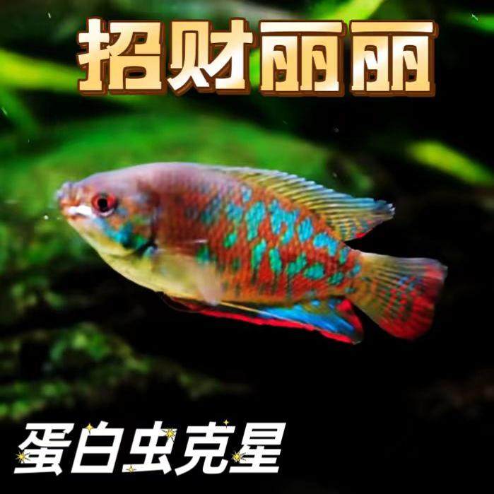 曼龙鱼是 popular 的热带观赏鱼,常见品种包括黄曼龙、蓝曼龙、五彩曼龙等,体型小巧,体色艳丽,性情温和,适合初学者饲养。它们属于丝足鲈科,原产于东南亚,喜弱酸性至中性软水,适宜水温24–28℃。黄曼龙通体金黄,蓝曼龙则呈现迷人钴蓝色,而“血珍珠马甲球”是人工选育的变种,体短圆润,鳞片如珍珠般闪耀,带有红色斑纹,极具观赏价值。曼龙鱼具有迷器器官,可吞咽空气辅助呼吸,适应力较强。常成群游动,适合搭配小型温和鱼类混养。因其色彩丰富、易于照料,深受水族爱好者喜爱,是淡水观赏缸中的亮点之一。