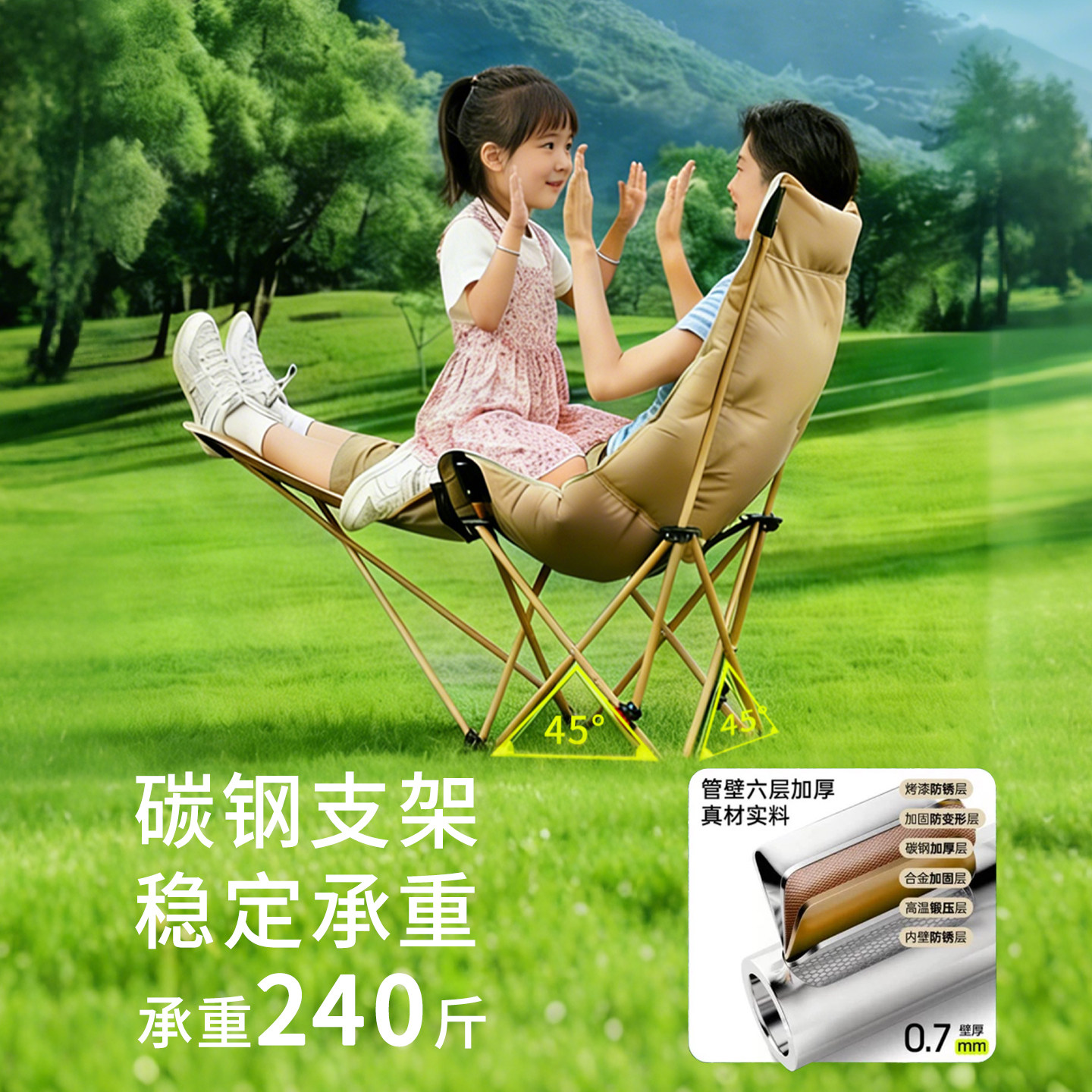 户外折叠椅月亮椅便携式躺椅露营椅子沙滩椅钓鱼凳子野餐桌椅装备