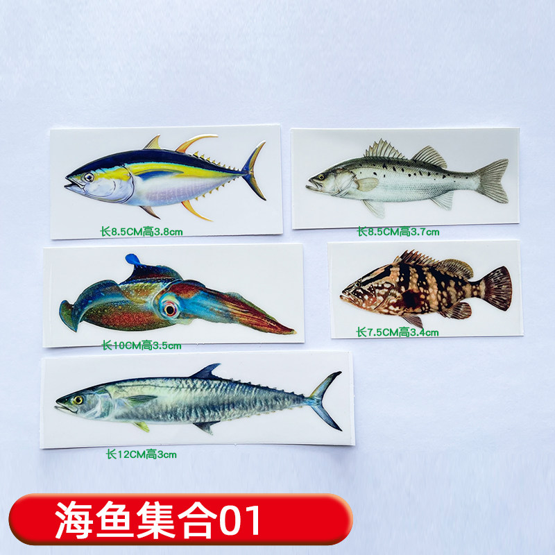 淘宝钓鱼贴纸路亚转印贴金枪鱼贴真鱼图案钓箱图案转印黑鲷马鲛鳜鱼贴