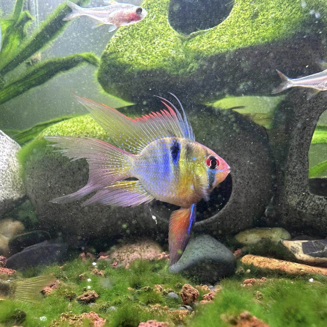 神仙鱼小型鱼苗淡水热带观赏鱼活体红头三色白蓝魔秘鲁燕鱼七彩鱼