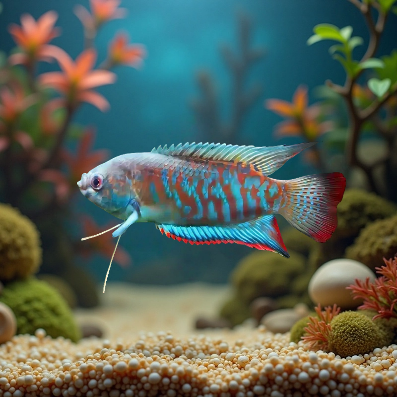 招财丽丽鱼,又称招财鱼或斗鱼,是一种广受欢迎的热带淡水观赏鱼。体型小巧,色彩艳丽,雄鱼尤其拥有绚丽的体色和飘逸的鳍条,极具观赏价值。原产于东南亚,适应力强,对水质要求不高,适合新手饲养。它们性格活泼但略带领地意识,建议单独或成对饲养。招财丽丽鱼耐活好养,食性杂,可接受人工饲料、红虫等多种食物,水温维持在24-28℃即可健康生长。因其寓意吉祥、招财进宝,常被养在家中或办公室,既美化环境又增添生气,是小型水族箱的理想选择。