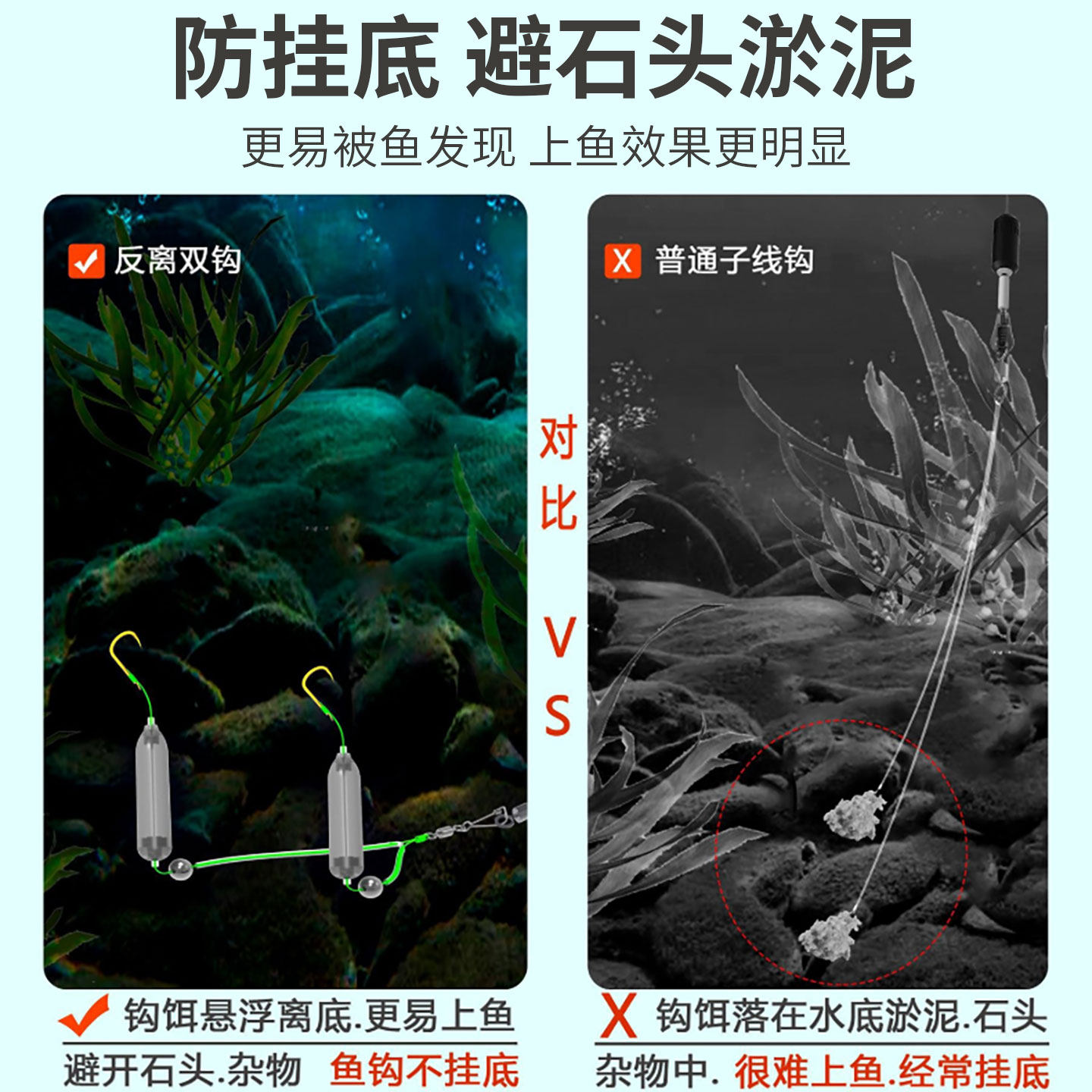 淘宝反底钓线组反离底子线双钩成品钓鱼钩欧鲤钓组伊势尼防挂底钩免调