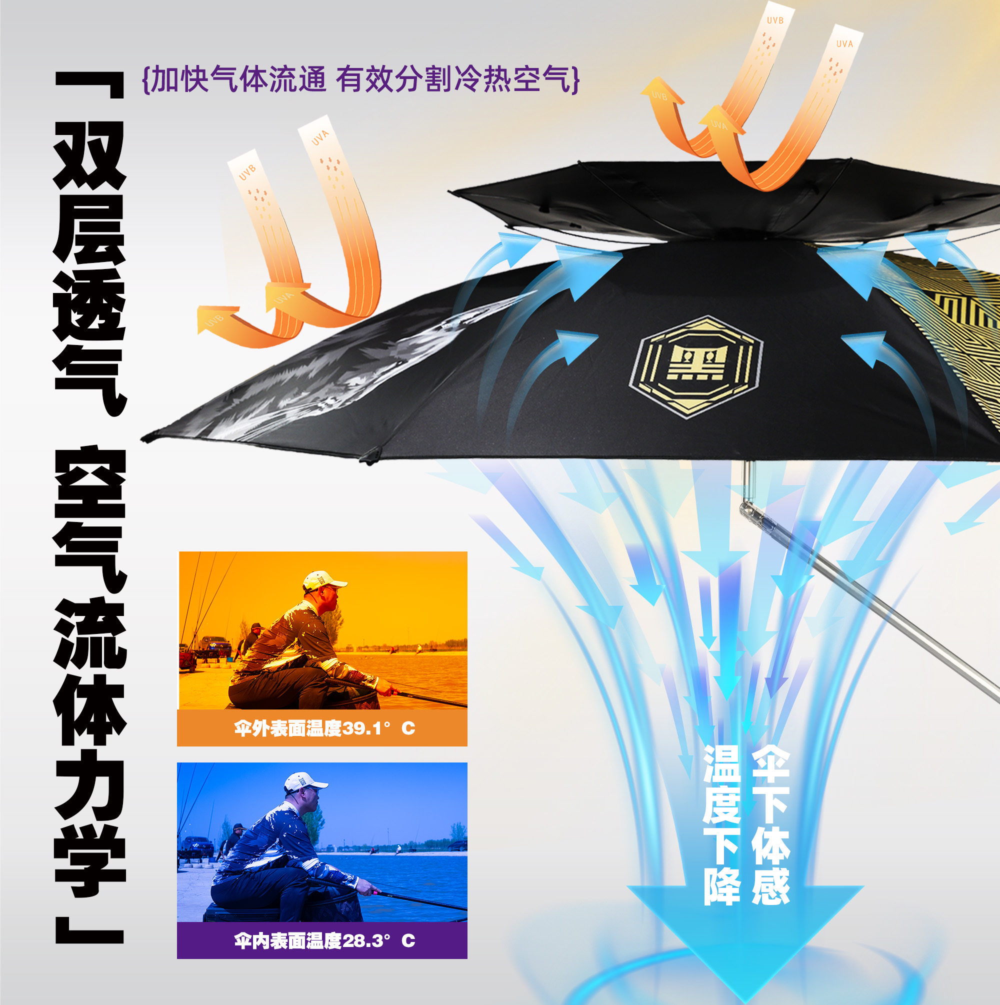 黑坑上岸黑锋双弯钓鱼伞,专为黑坑与野钓场景设计,兼顾实用性与耐用性。采用高强度双弯支架结构,抗风稳固,有效避免伞体晃动。伞面选用加厚黑胶涂层,UPF50+高效防晒,同时具备出色的防雨性能,晴雨两用无忧。双层透气设计,顶部设有通风口,降低风阻,提升稳定性。伞骨精选轻质合金材质,结实抗腐蚀,收合便捷,携带轻松。加宽伞面覆盖范围,为钓者提供充足遮阳避雨空间。无论是烈日暴晒还是突降阵雨,黑锋双弯钓鱼伞都是户外垂钓的理想伴侣,助您专注作钓,畅享垂钓乐趣。