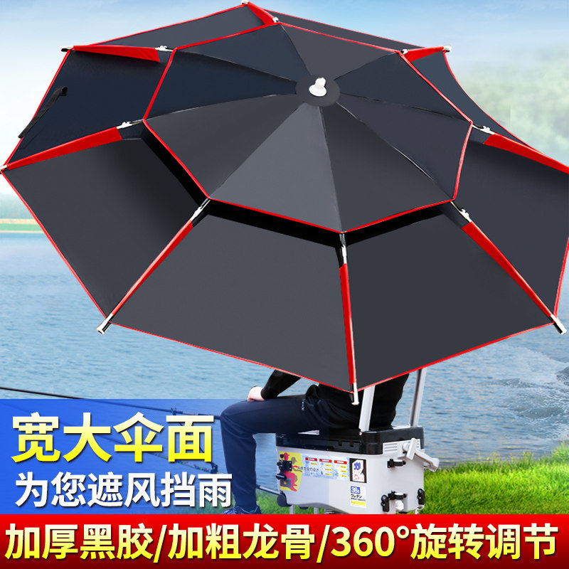 淘宝钓鱼伞加厚防雨防风暴雨防紫外线垂钓遮阳黑胶2.4米双层折叠万向