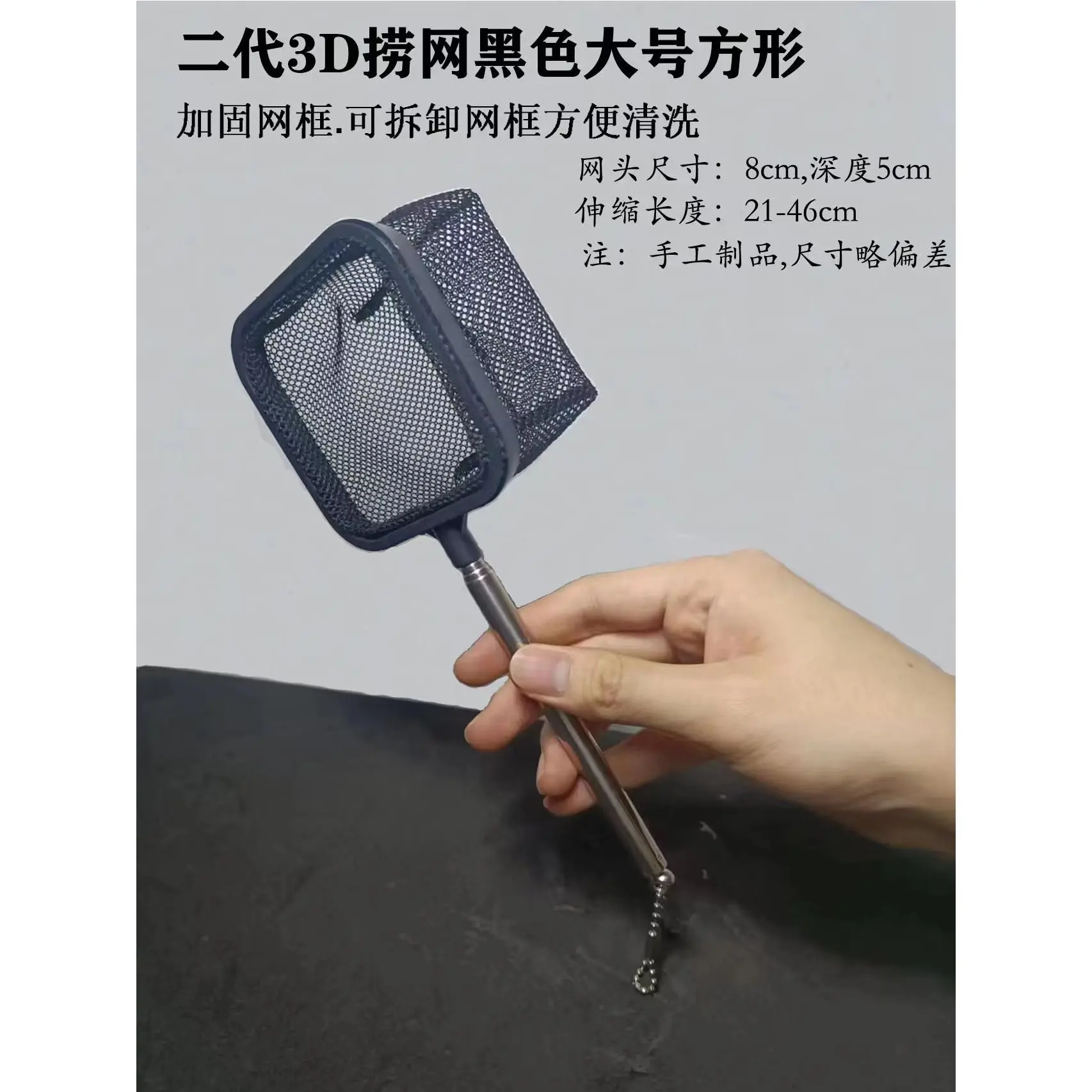 鱼缸鱼捞网不锈钢可伸缩渔网大号方型捕鱼网手抄网热带鱼家用鱼捞