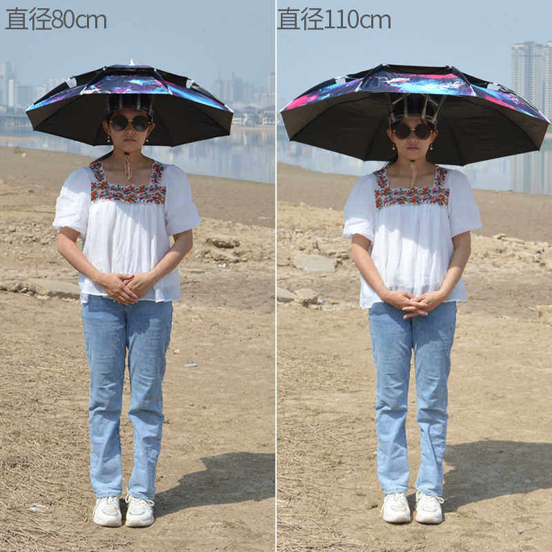 淘伞帽头戴式双层防风防雨钓鱼雨伞防晒折叠头顶雨伞帽户外遮阳垂钓