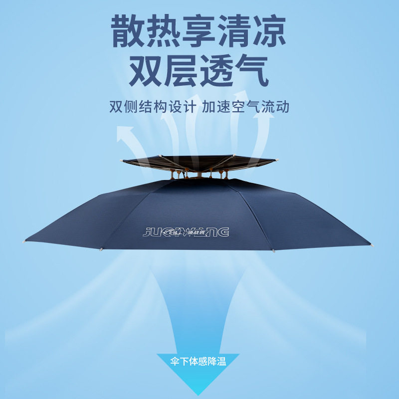淘伞帽头戴式双层防风防雨钓鱼雨伞防晒折叠头顶雨伞帽户外遮阳垂钓