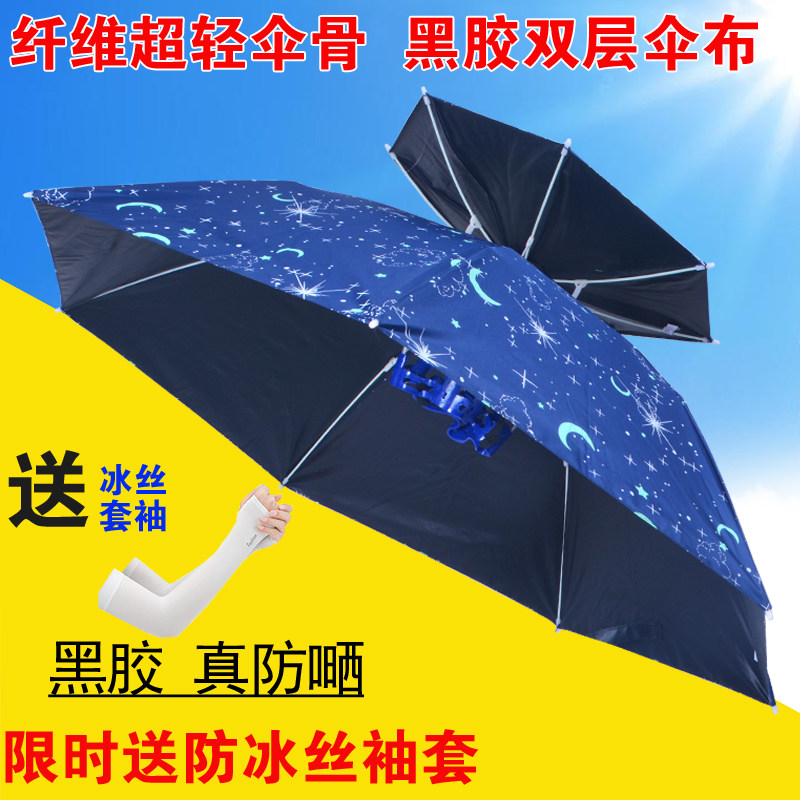 淘宝钓鱼伞帽头戴伞大号帽子伞双层遮阳防嗮两用斗笠伞超轻透气黑胶伞