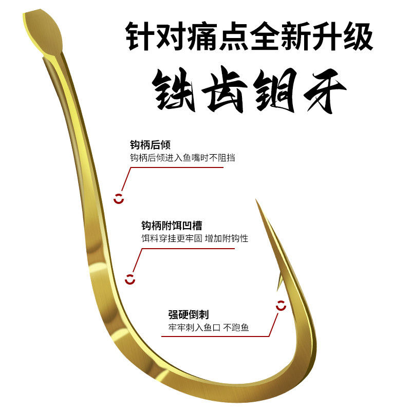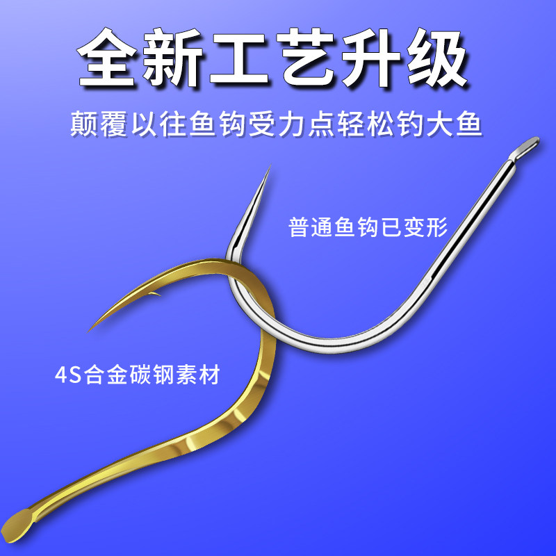 天猫老刀2025春季新品曲柄钓鱼钩翘嘴草鱼大物钩有倒刺金海夕伊势尼钩