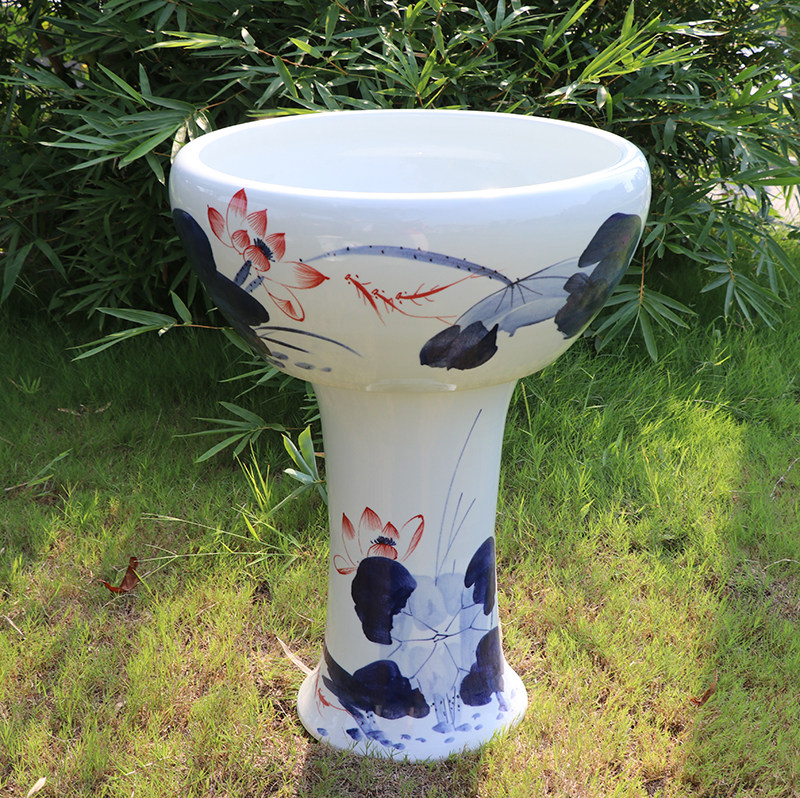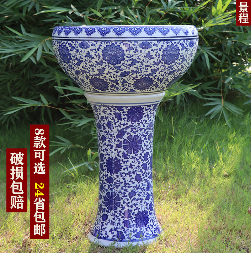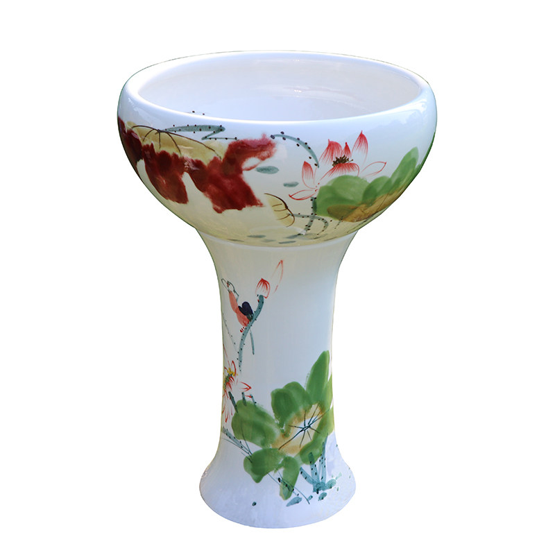 淘宝景德镇陶瓷落地立柱式鱼缸特大号金鱼缸睡莲荷花缸锦鲤缸风水室外