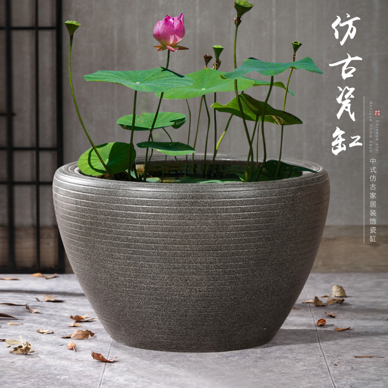 淘宝陶瓷鱼缸古法生态养鱼缸阳台小水池庭院老式大水缸大号睡莲荷花缸