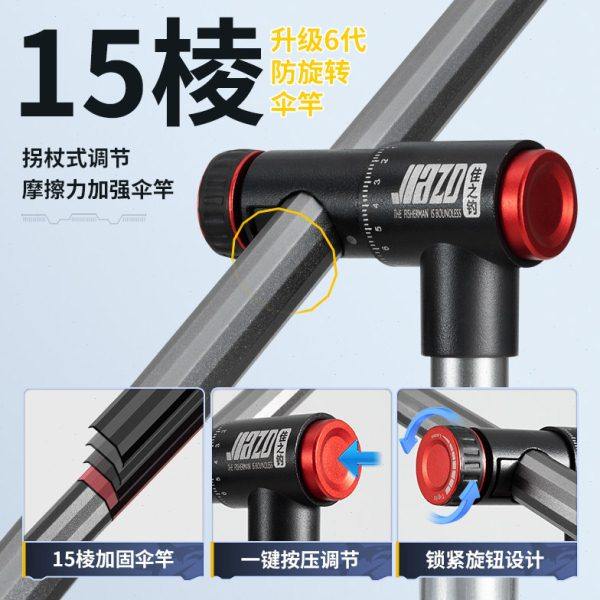佳之钓鱼伞2024新款万向大钓伞,专为户外垂钓爱好者设计,集防暴雨、强抗风与360°万向调节于一体。采用高密度防水涂层伞布,有效抵御暴雨侵袭,UPF50+防晒材质全面阻挡紫外线,实现全天候遮阳防护。独特拐杖式支撑结构,稳固耐用,可轻松插入泥地或固定于钓箱,解放双手。伞面直径达2.4米,覆盖面积广,搭配可调节高度与角度功能,适应不同地形与天气。轻便铝合金骨架兼顾强度与便携性,是野钓、湖钓、海钓的理想伴侣,让垂钓更舒适安心。