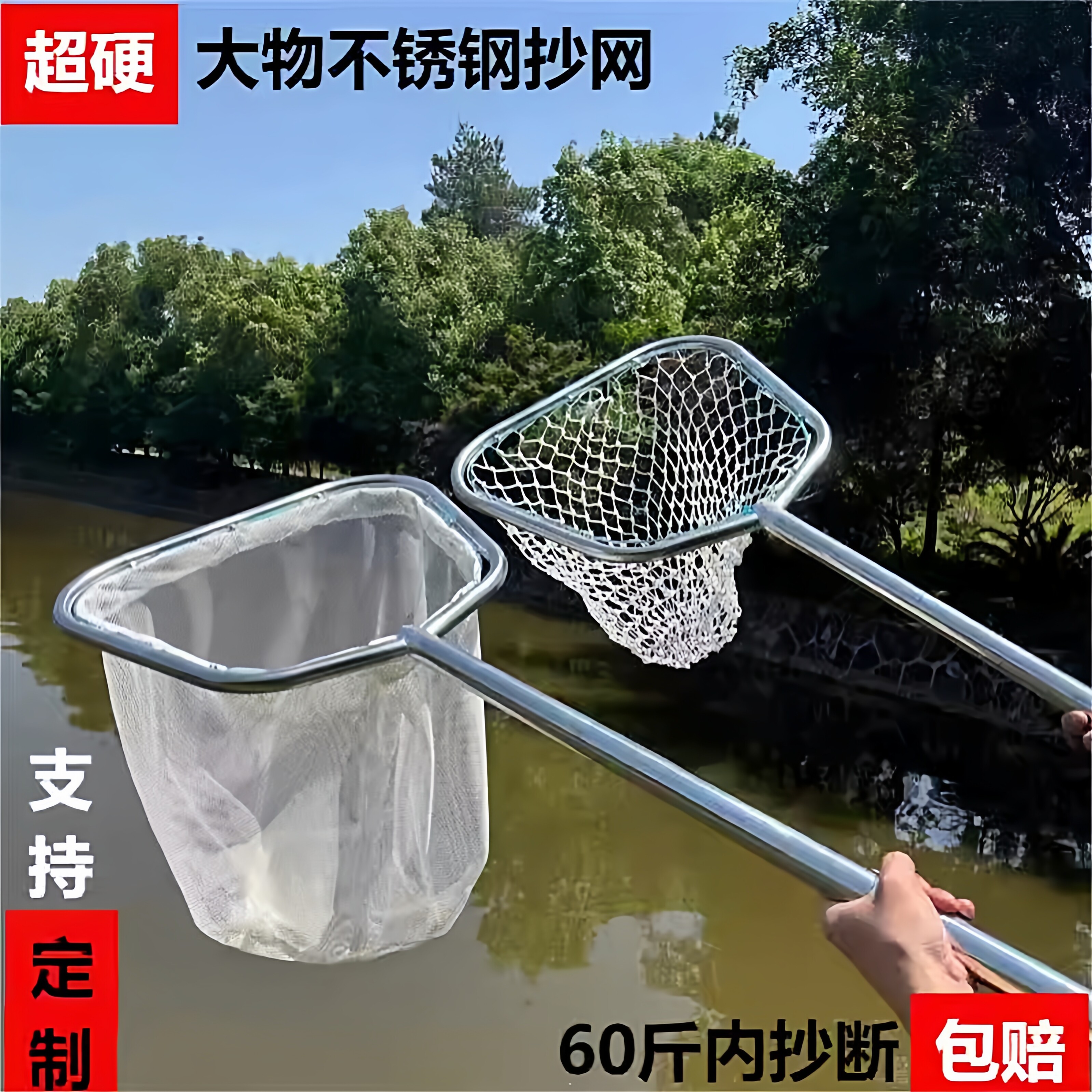 淘宝一体成型不锈钢抄网捞鱼网渔具鱼网超硬鱼捞海鲜赶海网抄捞子网兜