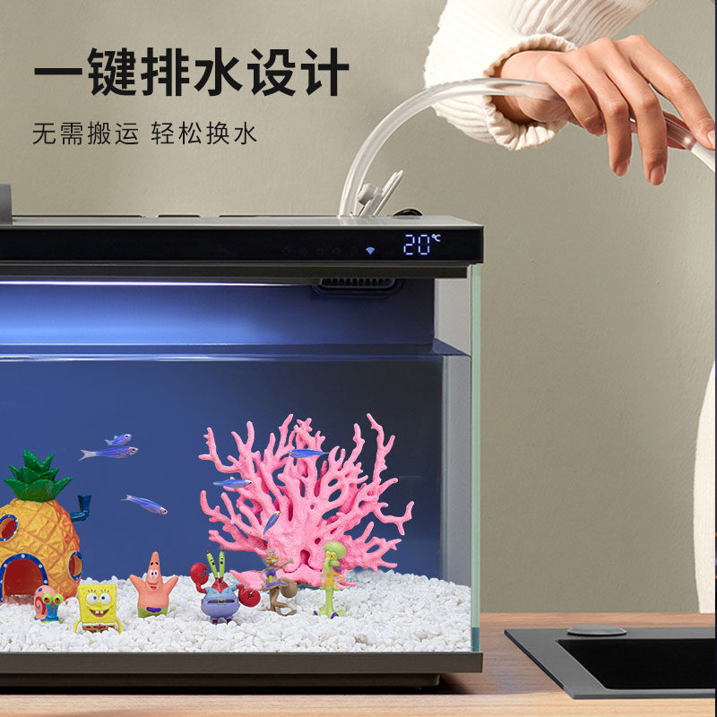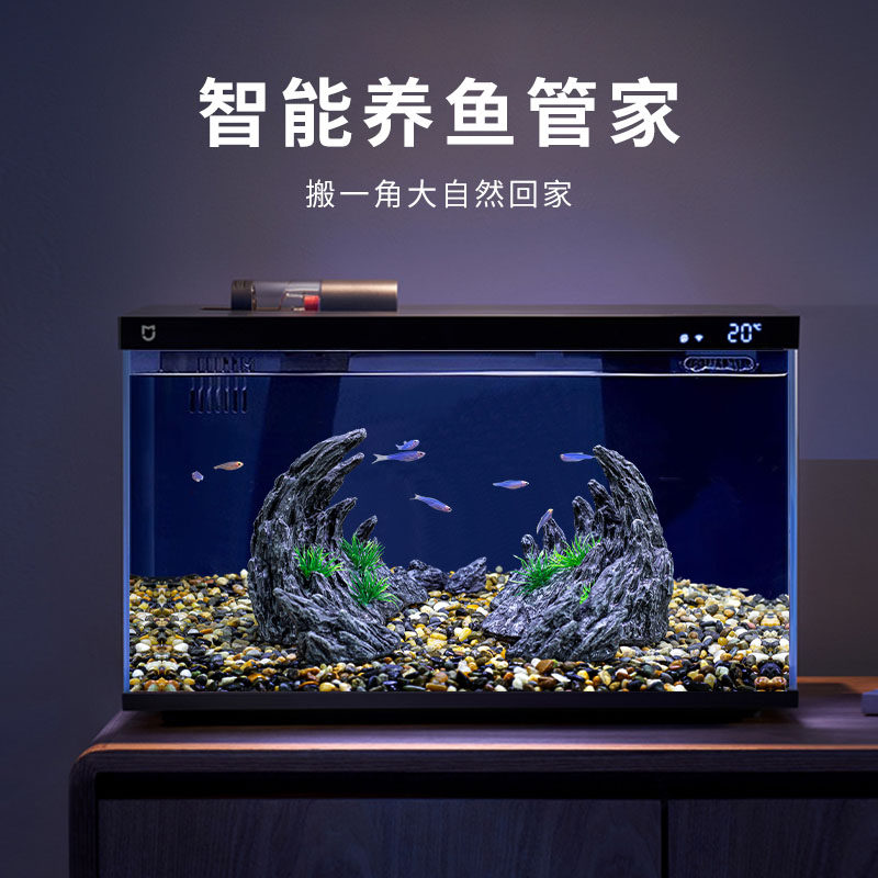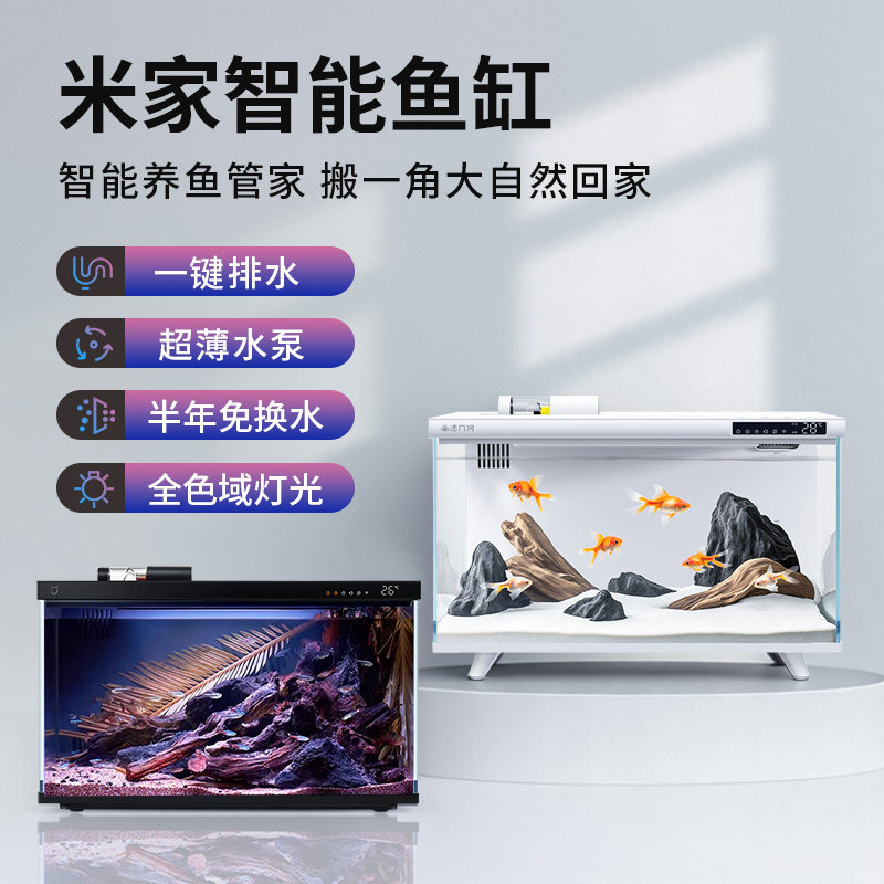 淘宝小米家智能鱼缸客厅小型造景生态家用背景超白玻璃桌面循环一体缸