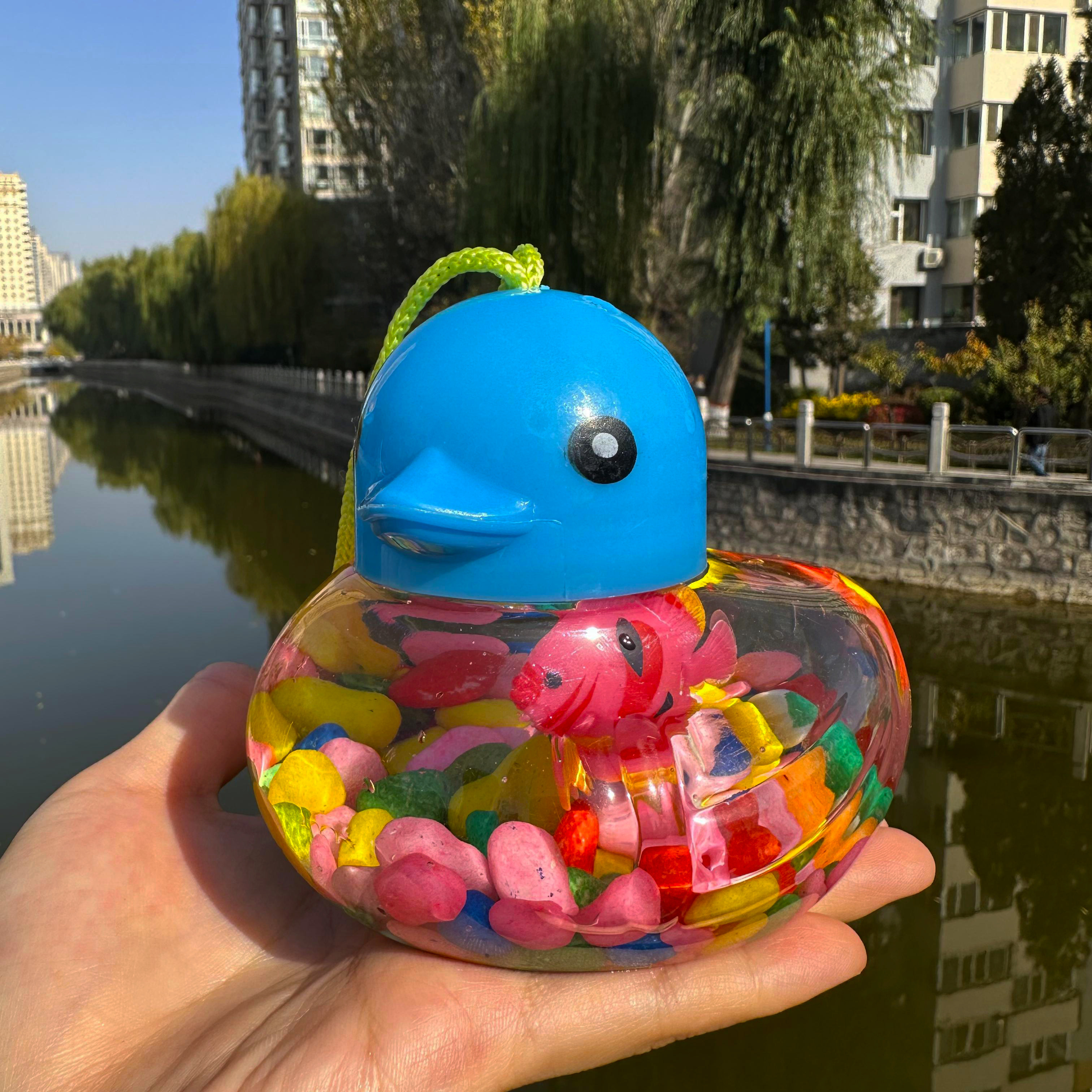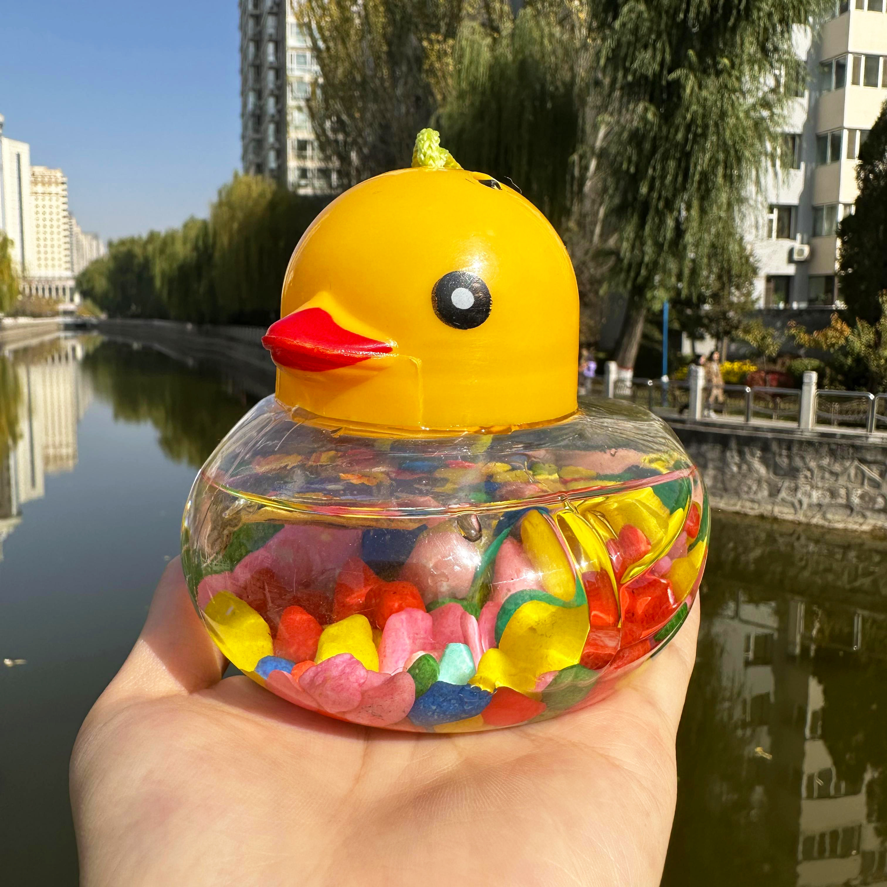 这款儿童塑料小鱼缸手提宠物金鱼缸,采用环保透明塑料材质,轻便安全,专为小朋友设计。迷你造型可爱,配有手提把手,方便孩子随身携带,随时观察小金鱼或小草龟的成长。透明瓶身清晰展示水中生态,激发孩子对自然的好奇心与责任感。适合养小型观赏鱼、金鱼、小乌龟,甚至可作为创意水培瓶使用。搭配趣味大黄鸭装饰,增添童趣。QQ瓶设计圆润光滑,无尖锐边角,使用更安心。是培养儿童爱心、观察力和动手能力的理想宠物伴侣,也是亲子互动的趣味好物。注意定期换水,保持清洁,让小动物健康成长。
