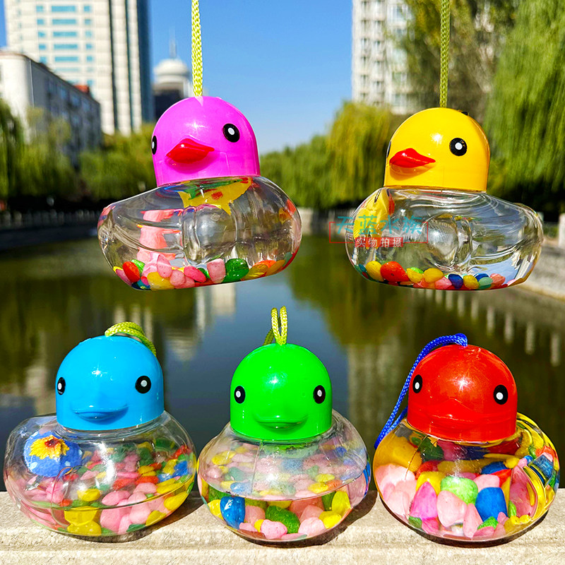 淘宝儿童塑料小鱼缸手提宠物金鱼缸迷你透明乌龟盒大黄鸭QQ瓶鱼瓶龟瓶