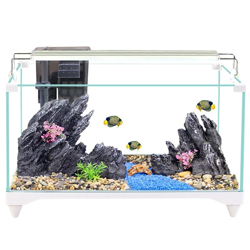 水晶/雪山造景斗鱼鱼缸小型家用新款客厅桌面微景观超白玻璃方缸