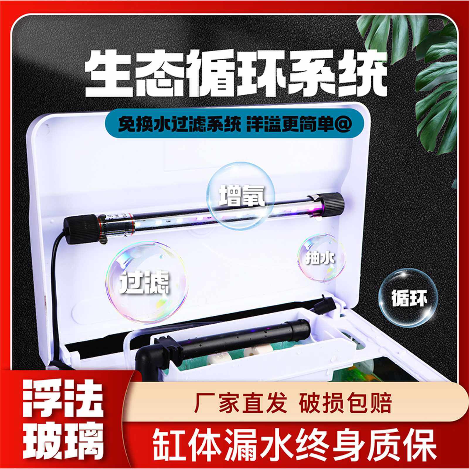 淘宝玻璃鱼缸自循环小型桌面客厅家用懒人免换水生态水族箱乌龟金鱼缸