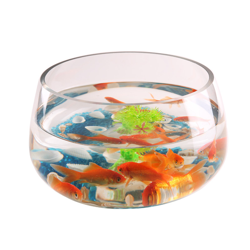 淘办公室小鱼缸加厚透明玻璃乌龟缸客厅家用桌面圆形迷你小型金鱼缸