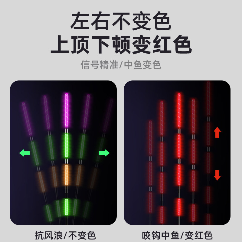 全绿激光硬尾咬钩变色电子漂日夜两用阴天尾夜光漂浮漂鱼漂鲫鱼