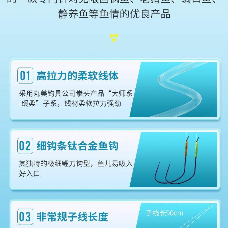 丸美享钓“太空熊猫-稳必胜”无结子线双钩黑坑成品钓组,专为竞技与黑坑钓场设计,共20付装。采用高韧性进口碳线,经特殊工艺处理,实现无结连接,有效减少结节损失,提升整体拉力值与灵敏度。双钩配置优化受力结构,搭配防缠绕设计,飞磕鲫鱼、鲤鱼更稳准。太空熊猫主题涂装时尚醒目,兼具辨识度与趣味性。子线长度精准匹配,出厂即调校,开袋即用,节省绑钩时间,提升作钓效率。适用于快鱼、高密度鱼情,是追求高效作钓的钓手理想之选,助您在黑坑中稳操胜券。