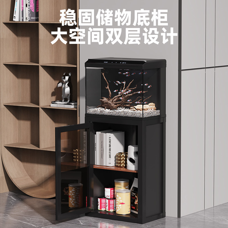 天猫家用客厅阳台电视柜沙发旁小型立式落地带底柜一体玻璃鱼缸水族箱