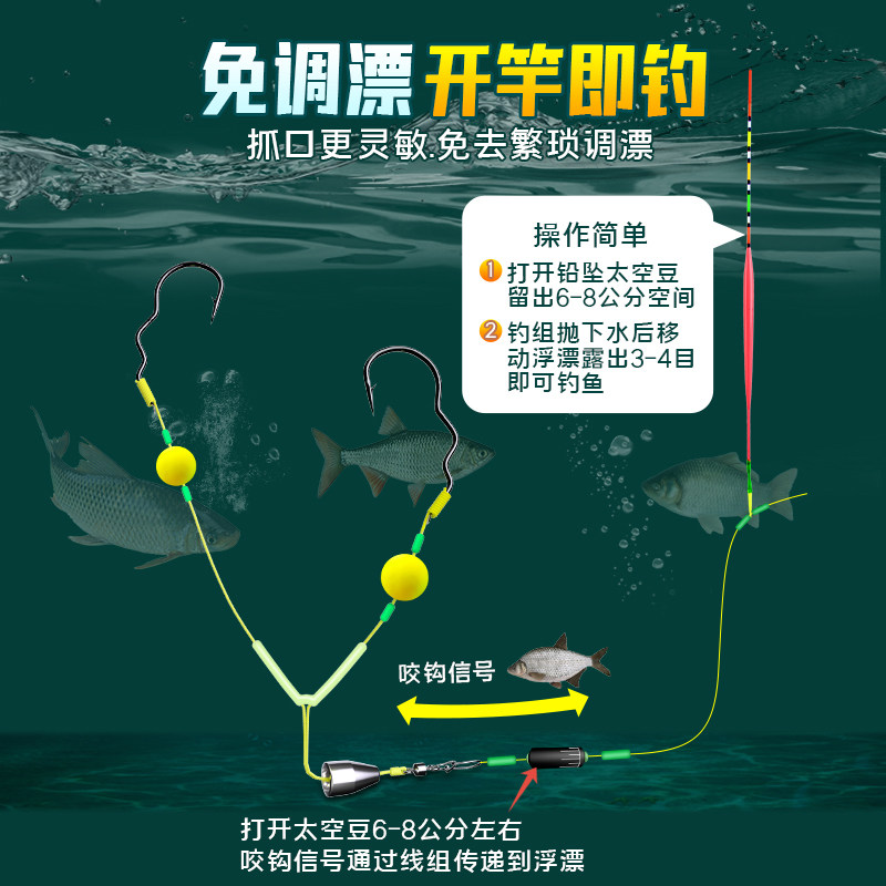 淘宝【双钩欧鲤钓】双钩反底钓组全套成品防缠绕短子线浮水珠珠钓钓鱼