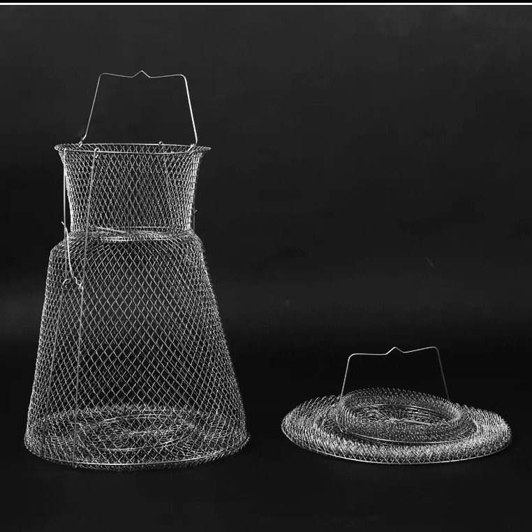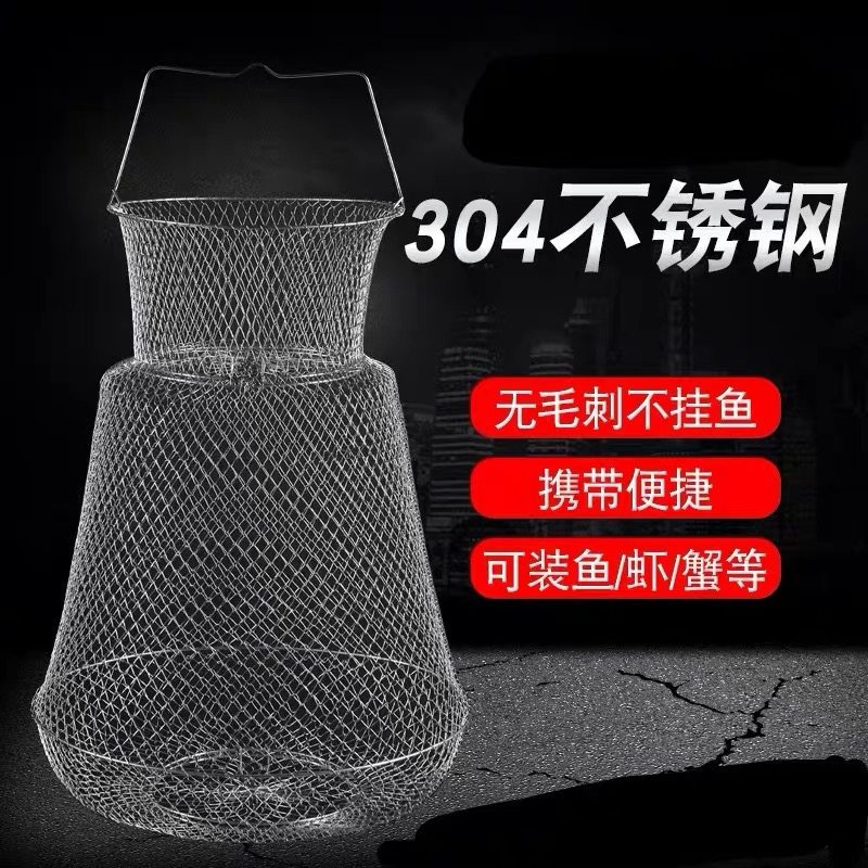 淘折叠不锈钢丝鱼护鱼篓网兜海钓装鱼螃蟹金属鱼笼速干便携渔网钓鱼