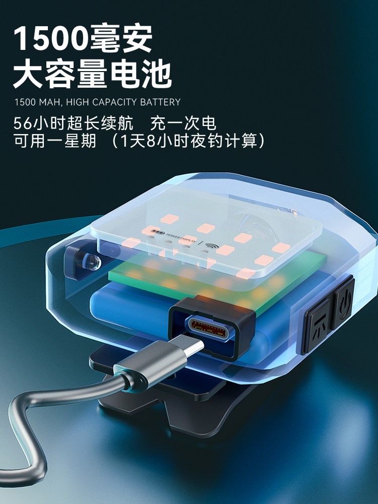 天夜钓头灯超长续航钓鱼户外专用感应帽夹灯强光超亮充电头戴夹帽