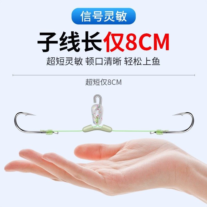 快挂超短子线双钩鲮鱼新关东防缠绕土鲮专用大力马梅州钓法钓鱼钩,专为梅州地区土鲮垂钓优化设计。采用高强度大力马线作为子线,具备超强耐磨与抗拉力,有效防止挂底断线。超短子线搭配双新关东钩,提升鱼讯灵敏度,双钩设计增加中鱼率。独特的快挂结构便于更换子线,节省作钓时间。防缠绕工艺减少抛投时的线组打结问题,提升抛投流畅度。整体配置契合梅州钓法轻灵、灵敏的特点,特别适合在复杂水域精准作钓土鲮,是南方钓友专攻鲮鱼的得力装备。