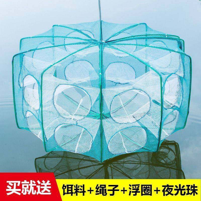 淘自动进鱼网箱折叠捕虾笼多边形圆形捕鱼笼黄鳝泥鳅龙虾杂鱼网笼花